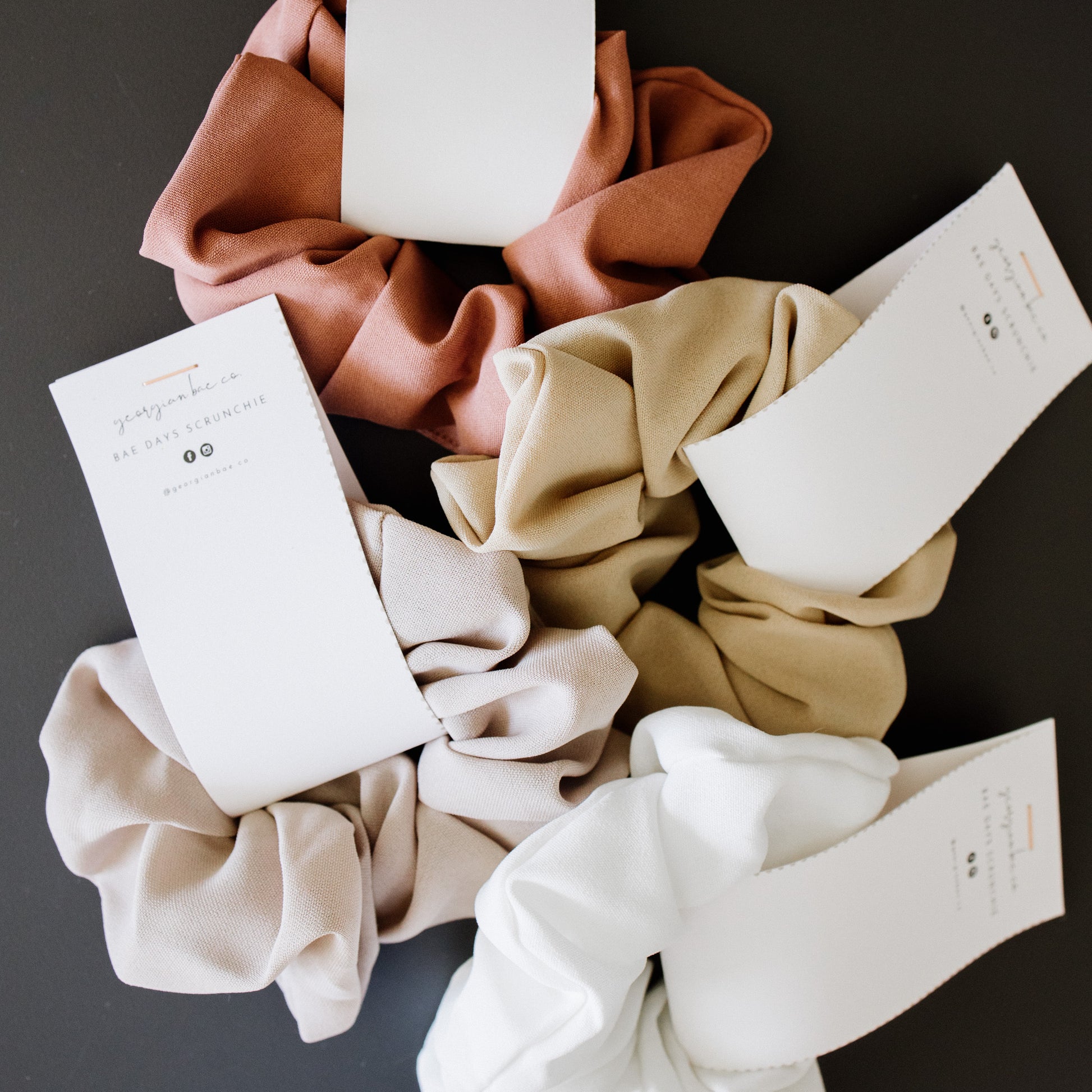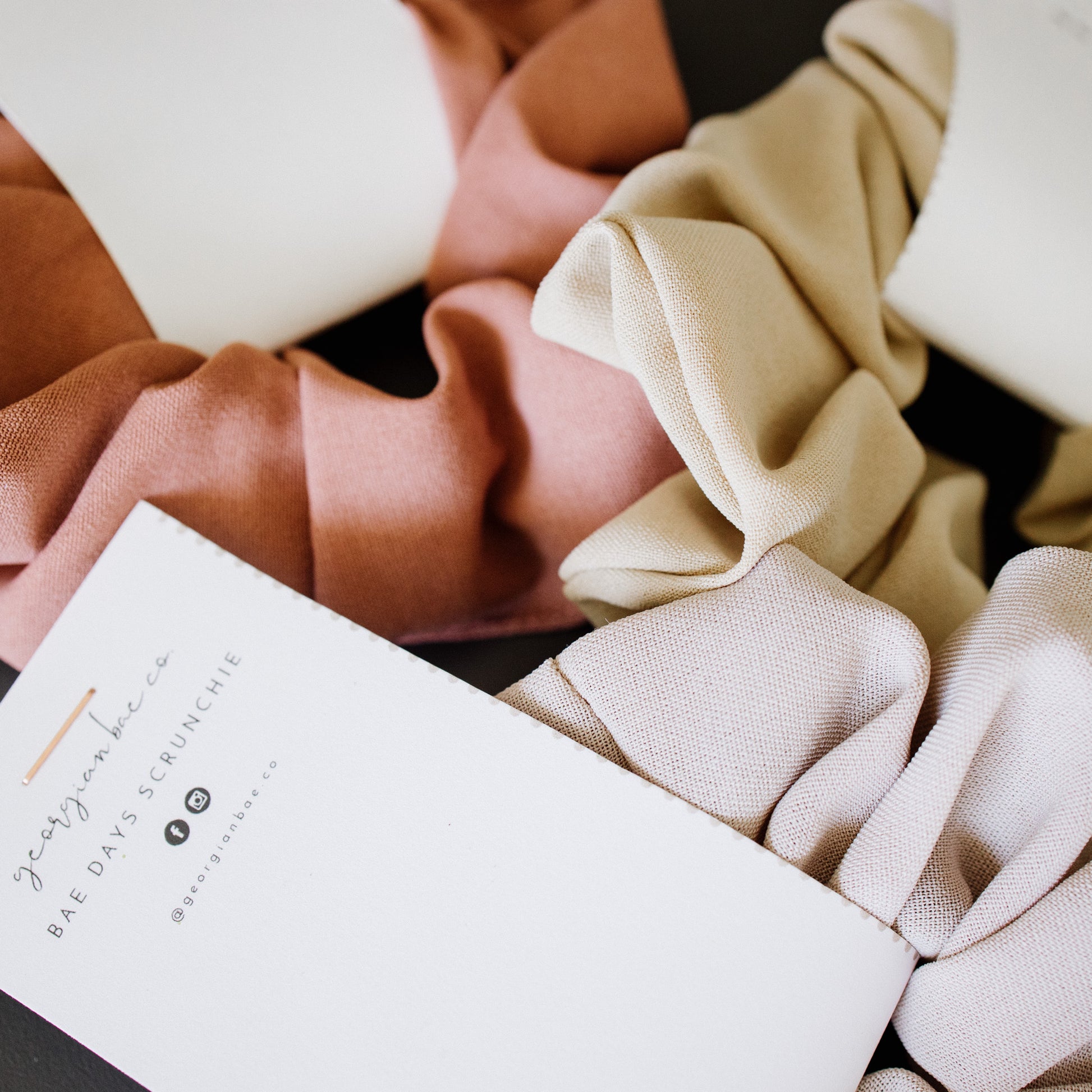 Purchase one individually or get 4 for $40. Discount applied automatically at checkout when 4 scrunchies are added to cart.